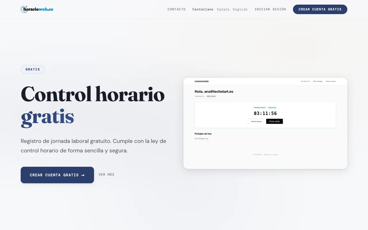Control horario digital y gratuito. Registro de jornada conforme al RDL 8/2019 con informes exportables y registros firmados.