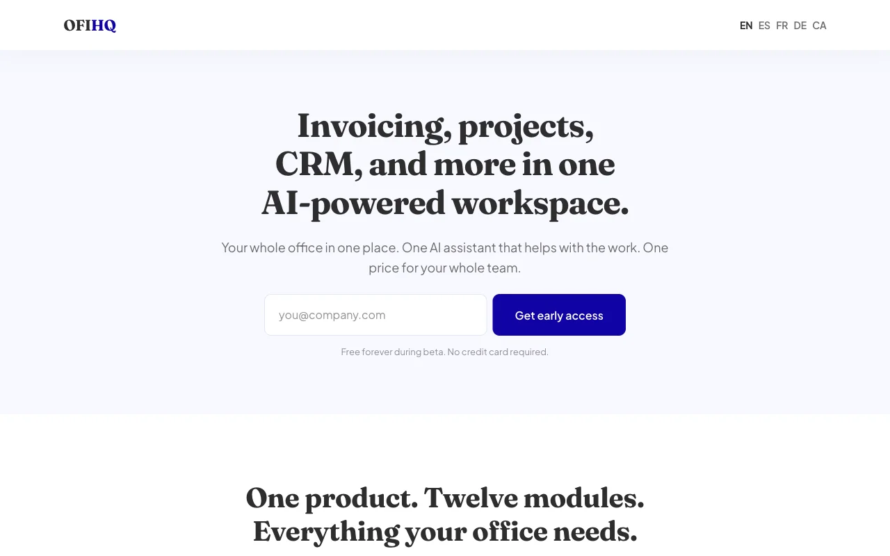 Tu oficina, resuelta. Facturación, proyectos, CRM, gastos y herramientas de gestión en una sola plataforma impulsada por IA.